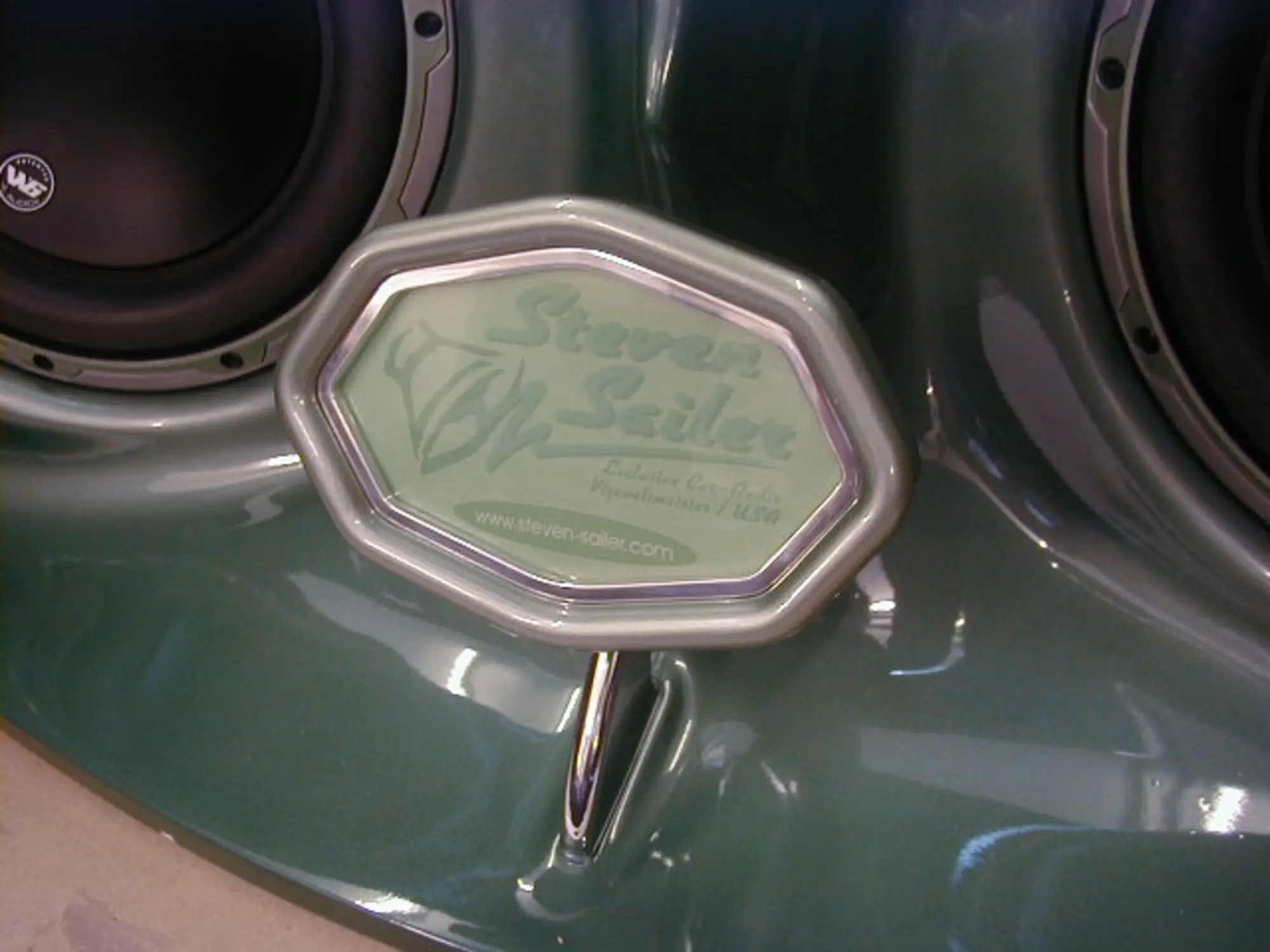 - Beide Subwoofer sind in einem speziellem GFK-Gehäuse hinter der Rücksitzbank eingebaut. Vor den Subwoofern befindet sich eine gebogene Plexiglasscheibe. Dadurch bekommt der ganze Einbau