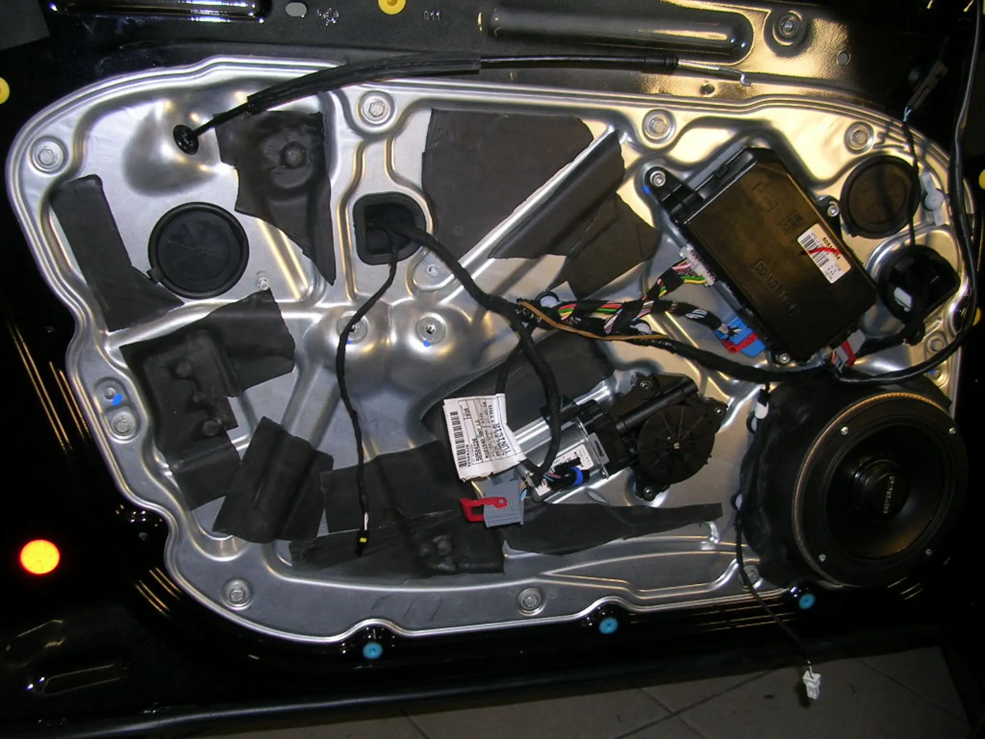 - In den Türen wurde die Space 6 von Hertz verbaut. Die Lautsprecher wurden auf ganz speziellen Rotgussringen montiert, um die maximale Klangqualität zu errechen. Zusätzlich wurden die ganzen Türen und Verkleidungen aufwendigst gedämmt.