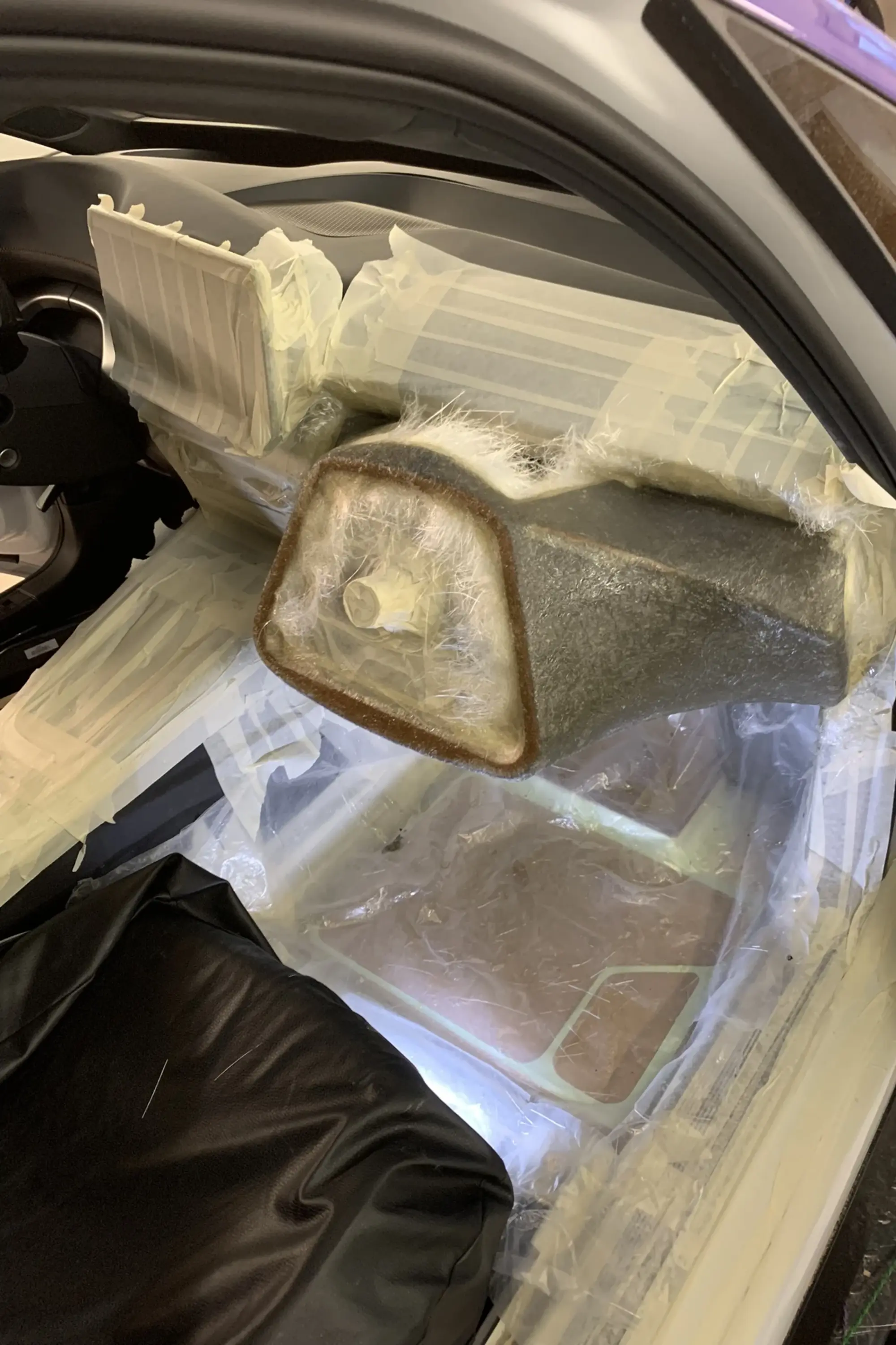 - Die neue DSP 8-Kanal Endstufe mit 1200Watt wurde sauber hinter dem Handschuhfach montiert.